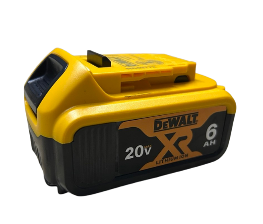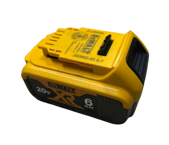 Batería recargable DeWalt de 20V de 6Ah, diseñada para ofrecer una autonomía prolongada y un rendimiento constante en herramientas eléctricas compatibles. Su tecnología de ion de litio permite una carga eficiente y una mayor durabilidad en el uso diario.