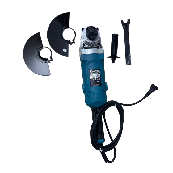 Amoladora Radial Makita eléctrica profesional, ideal para trabajos de corte, desbaste y pulido en metal, hierro, acero y otros materiales. Diseñada para uso intensivo, ofrece alta potencia, motor resistente y excelente control gracias a su empuñadura ergonómica. Incluye protector de disco y accesorios para mayor seguridad y precisión. Herramienta indispensable para talleres, construcción y bricolaje profesional.
